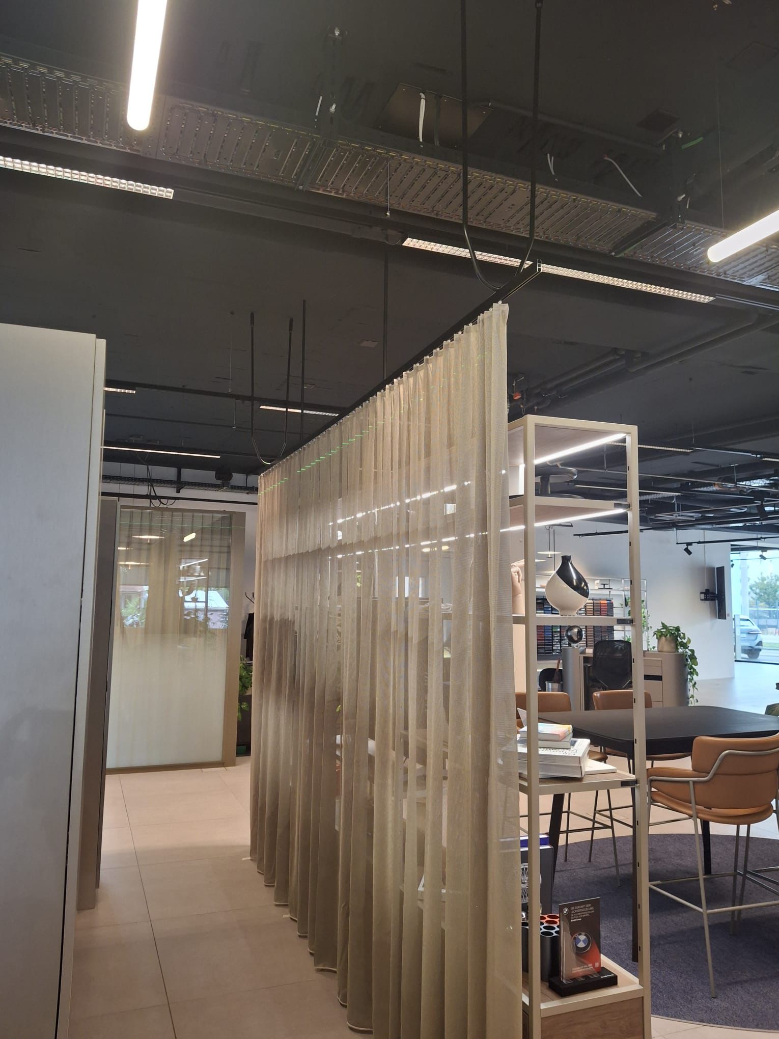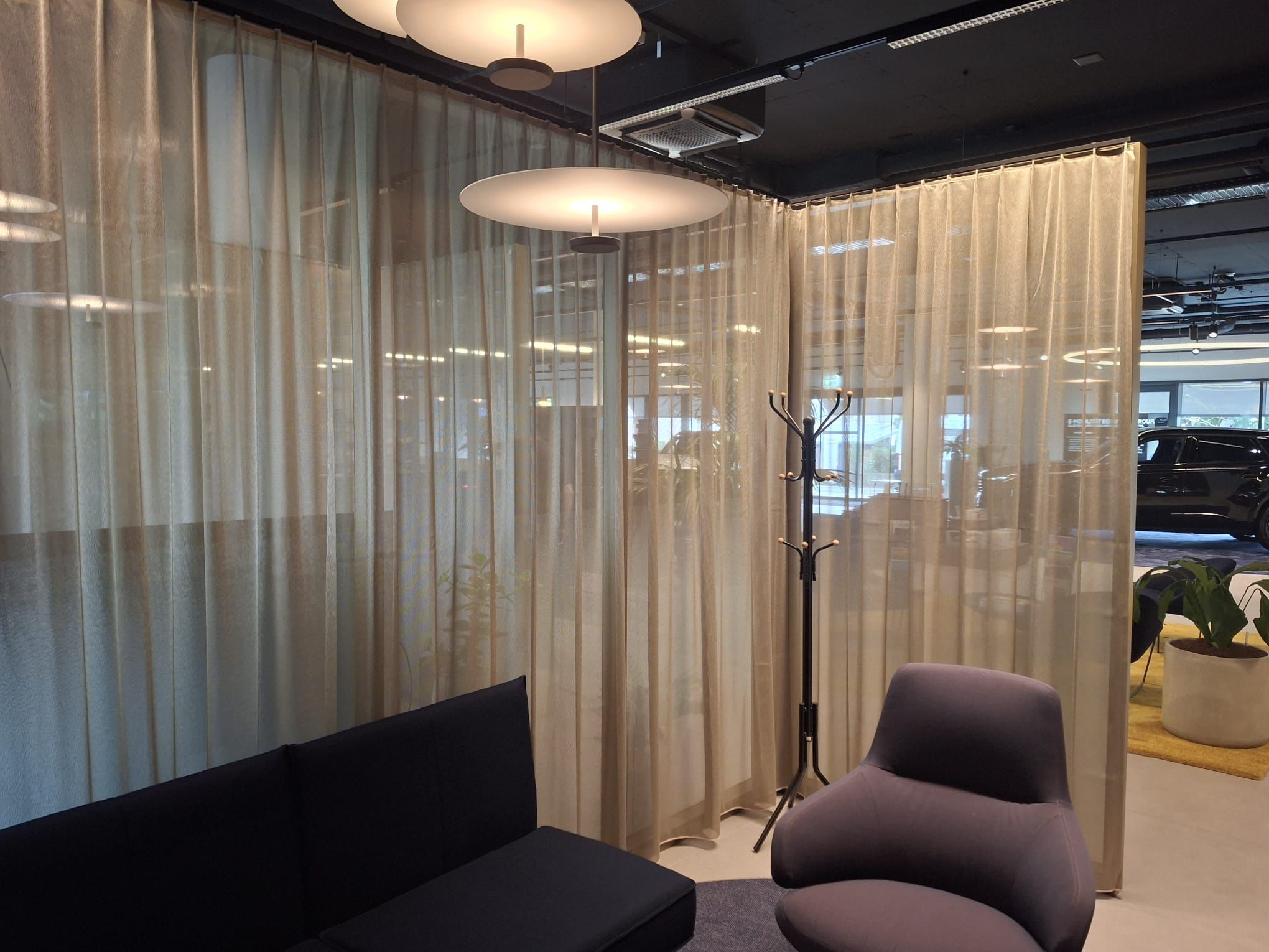 Das Ergebnis überzeugt auf ganzer Linie: Die Vorhänge schaffen eine stilvolle, einladende Atmosphäre, die den Premium-Charakter der Marke perfekt unterstreicht.